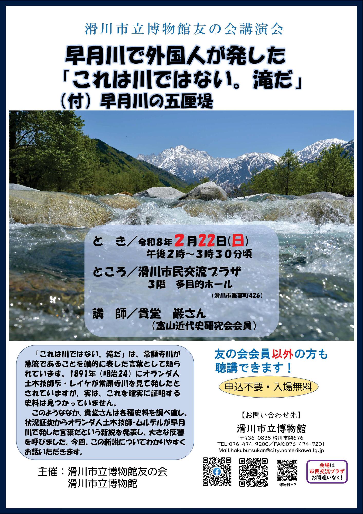 演題:「早月川で外国人が発した『これは川ではない。滝だ』(付)早月川の五厘堤」