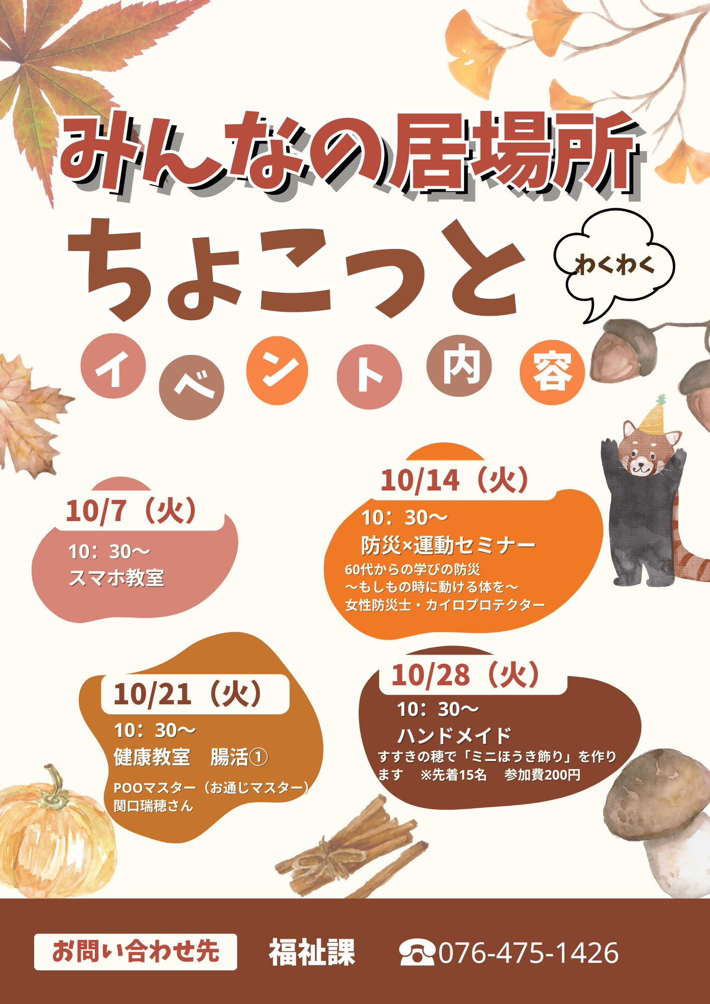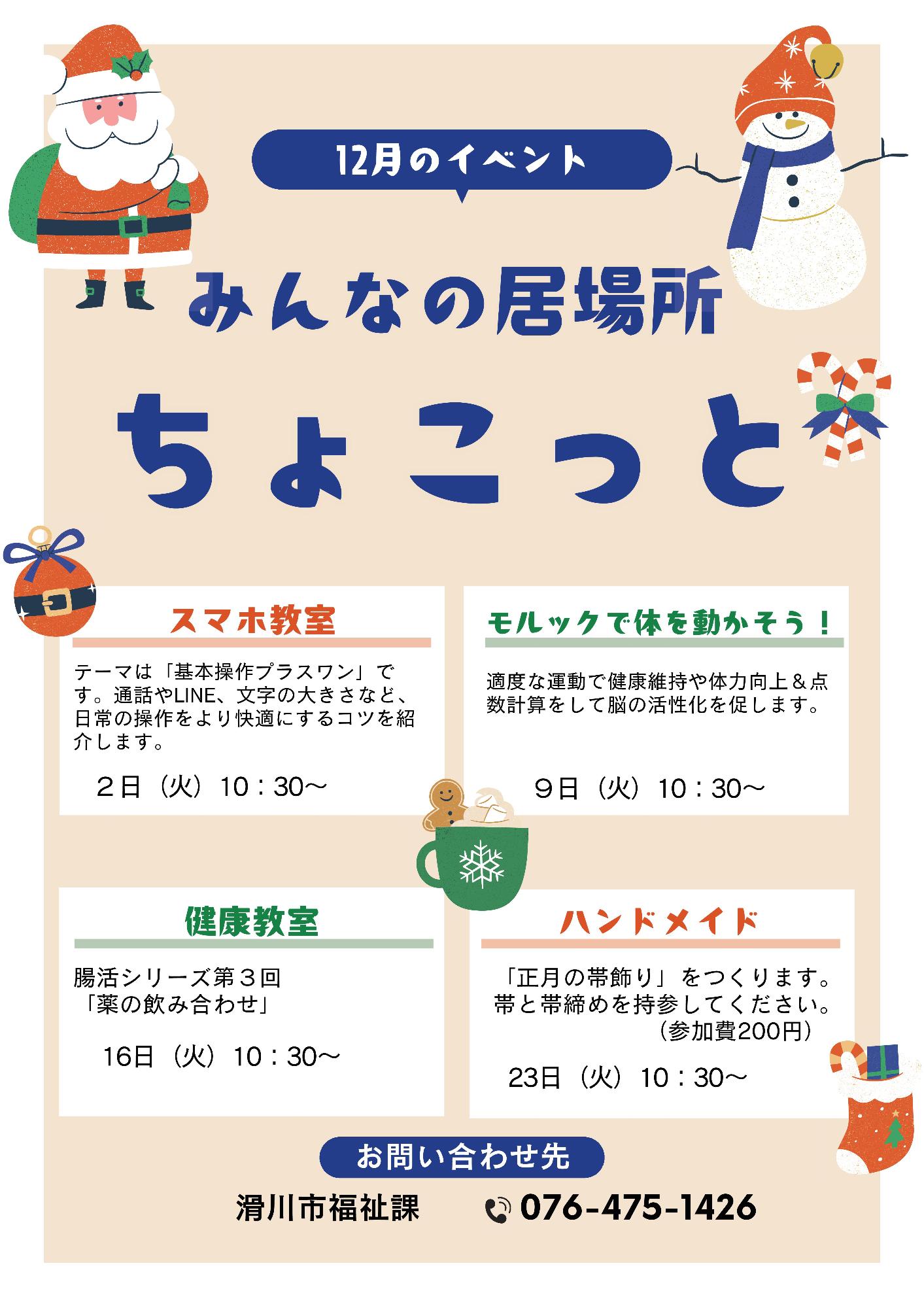 みんなの居場所「ちょこっと」からのお知らせです!