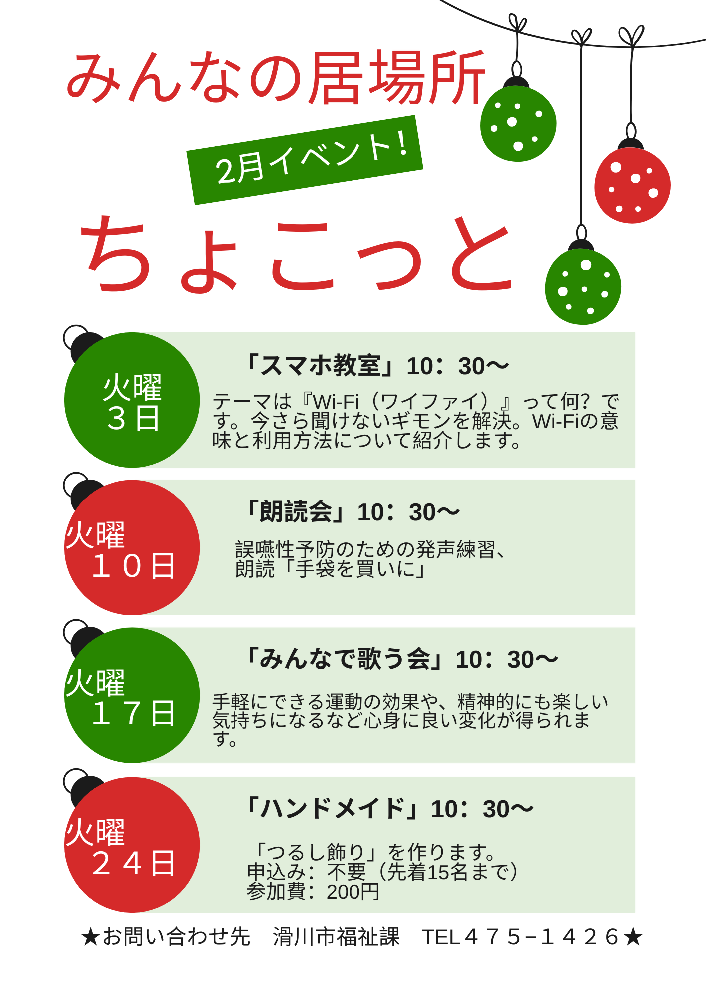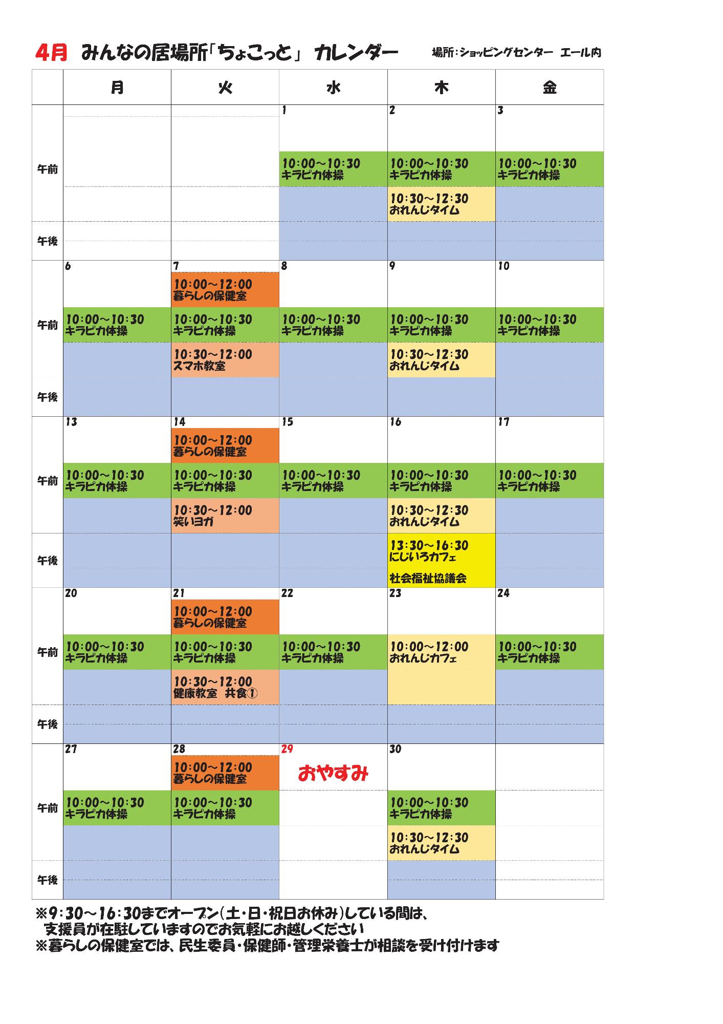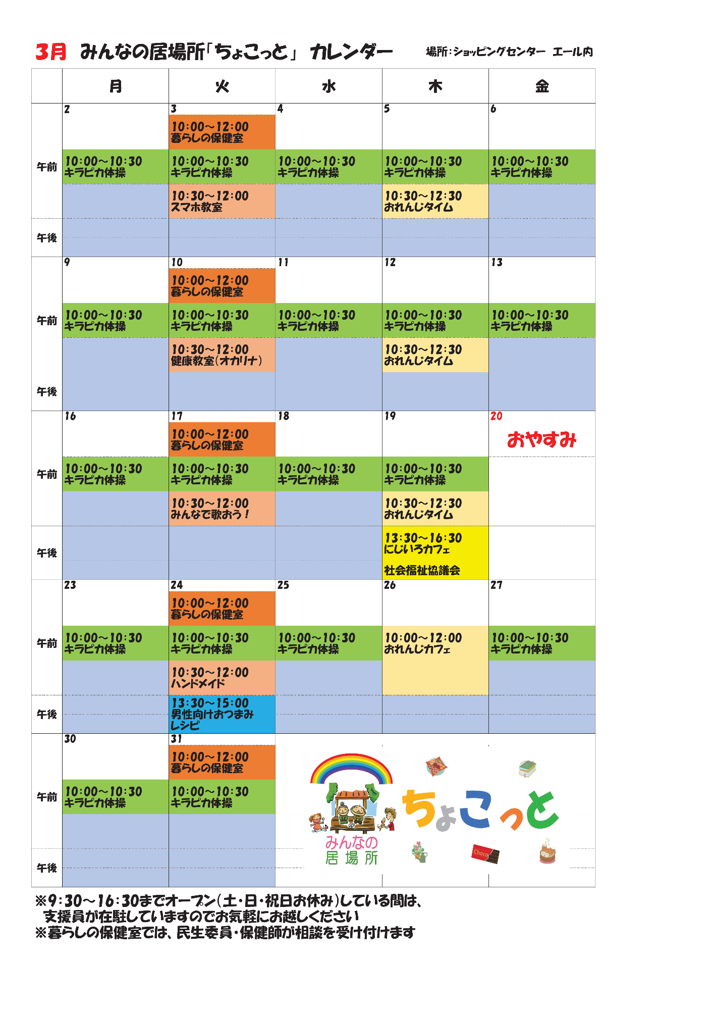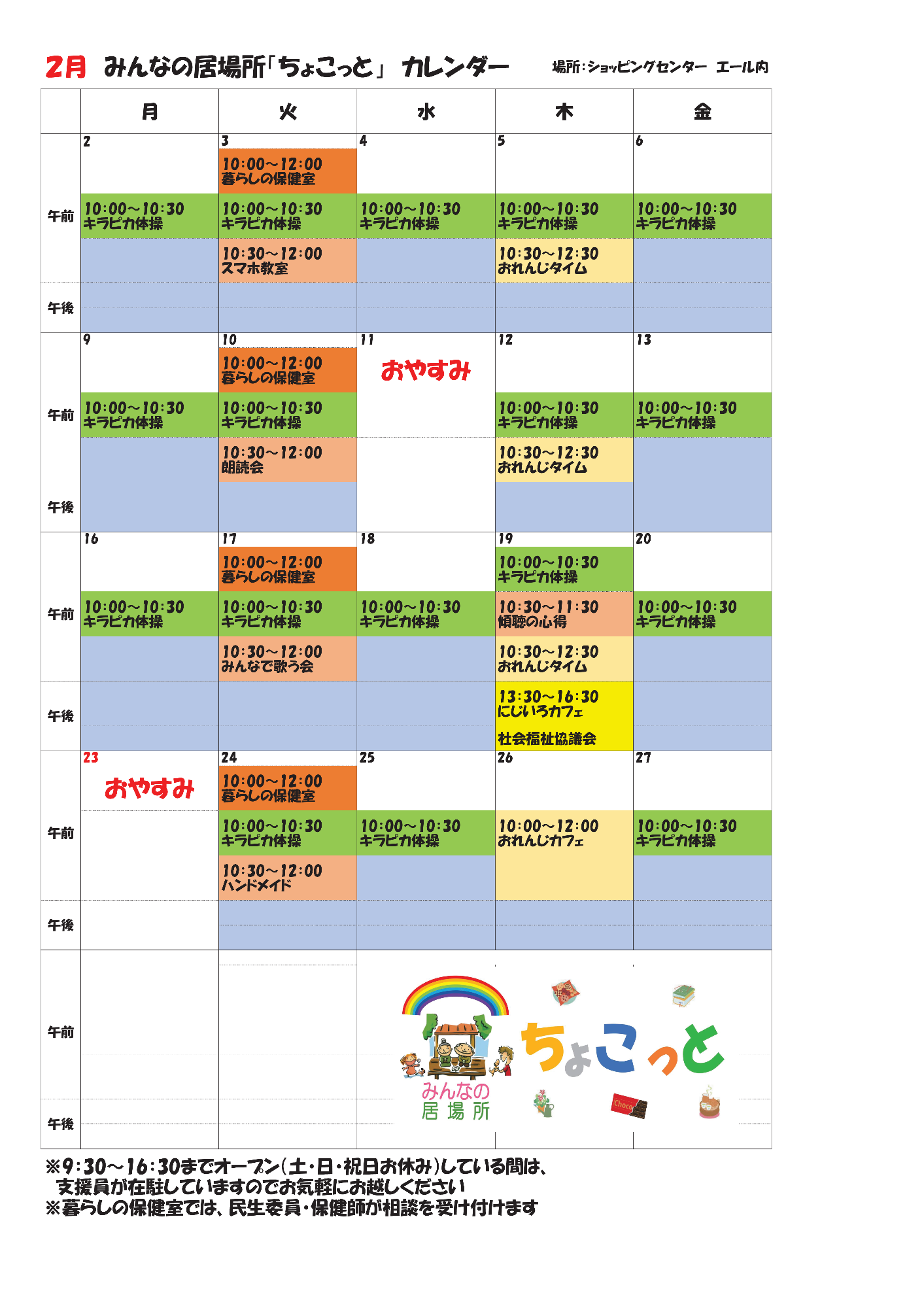※体操・脳トレなど行事開催時でも、参加されず自由に過ごされて構いません。