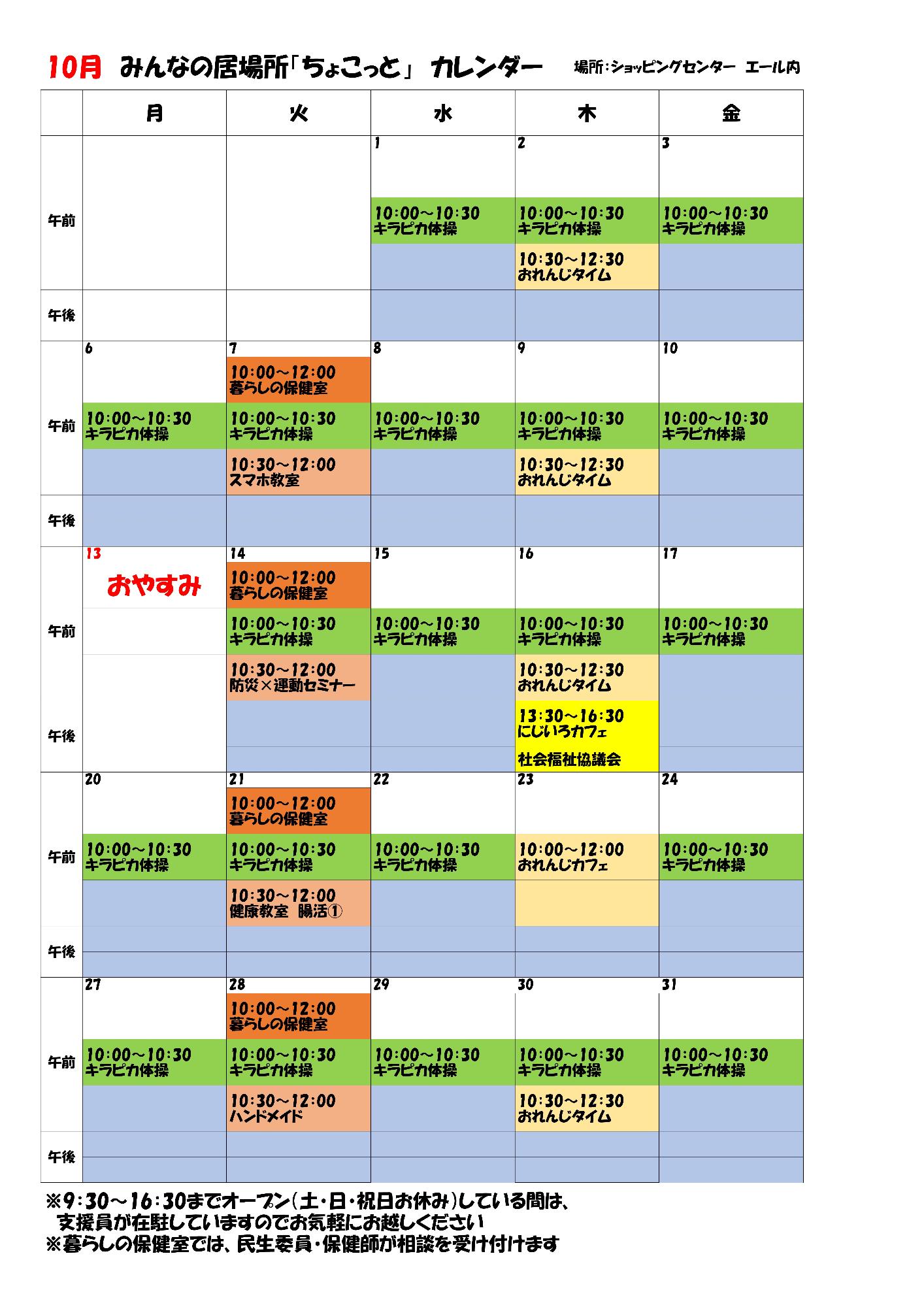 10月カレンダー