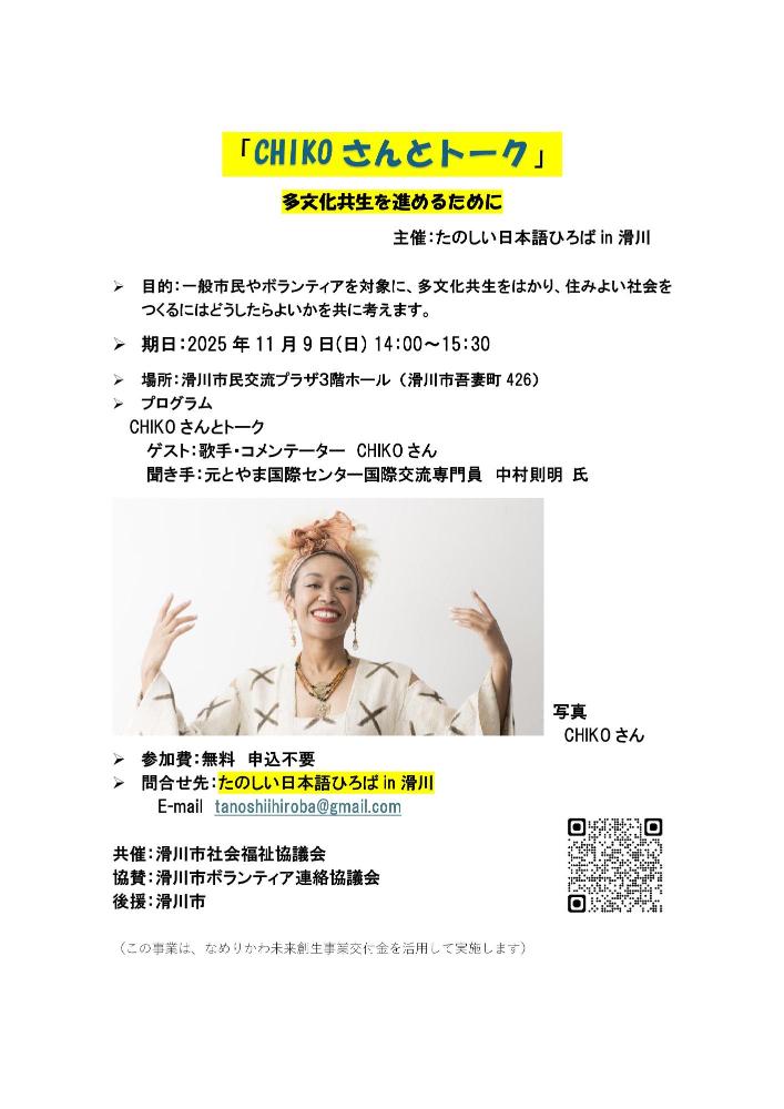 「CHIKOさんとトーク」多文化共生を進めるために(なめりかわ未来創生事業交付金活用イベント)