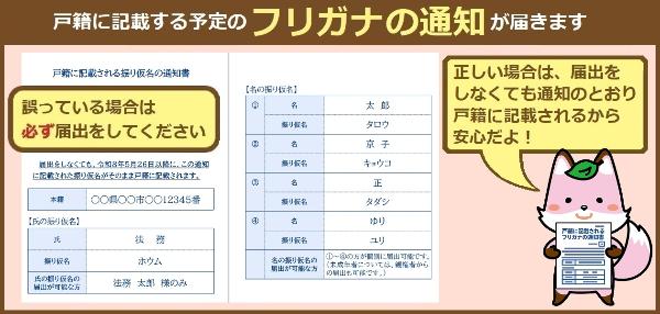 通知されたフリガナが正しいときは届出不要です。(令和8年5月26日以降通知されたフリガナが戸籍に記載されます。)