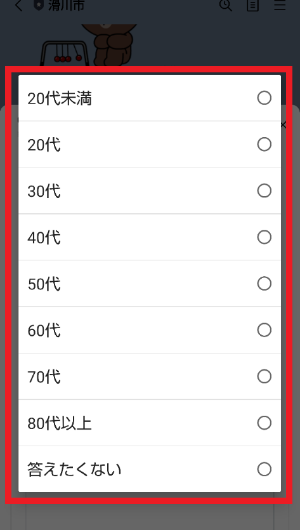 お住まい・性別の項目を選んでタップします。