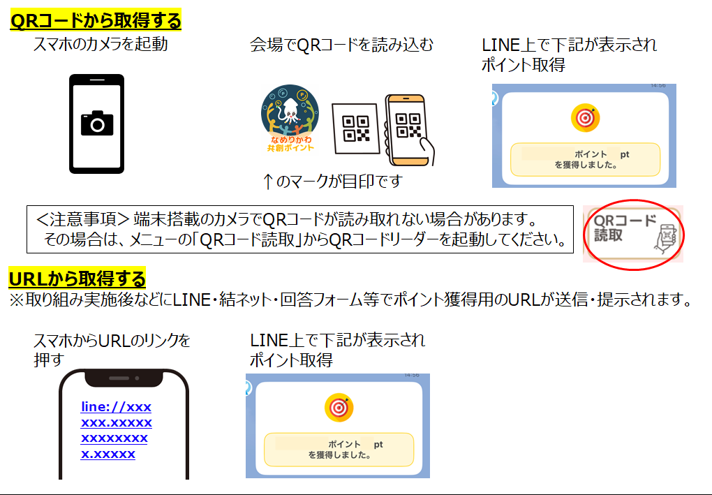 不自然なポイント取得(同じ時間帯に複数の施設利用やイベント参加のQRコードによるポイント加算など)が確認された場合は、市の判断によりランキングの表彰や抽選の対象外とさせていただきますのでご了承ください。
