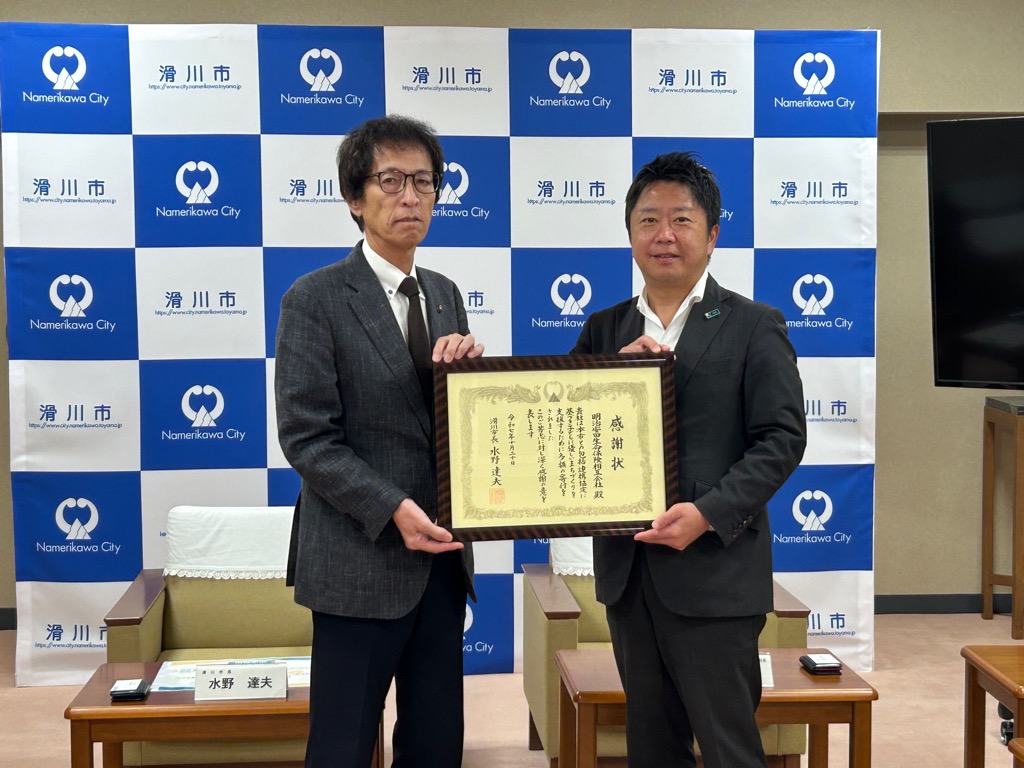 この度、明治安田生命保険相互会社 富山支社長 永野様より、本市へご寄付をいただき、贈呈式を執り行いました。深く感謝いたします。